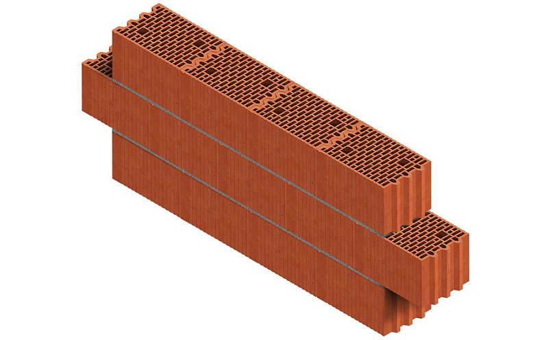 Блок керамический поризованный Porotherm 25M используется в строительстве несущих наружных стен с с дополнительным утеплением и внутренних несущих стен. Толщина стены составит 250 мм. Обладает тремя рядами утолщенных стенок – общая толщина которых составляет 32 мм.