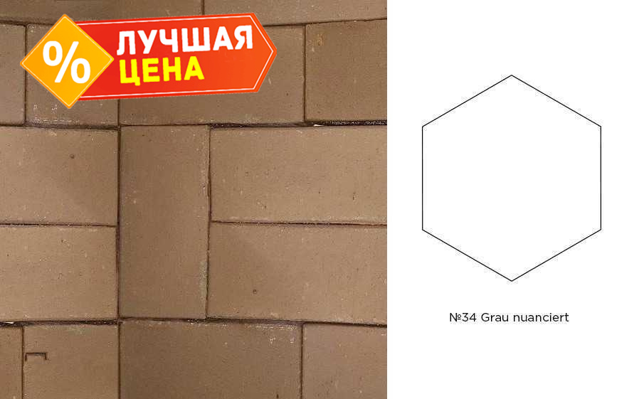Клинкерная брусчатка Muhr №34 Grau nuanciert, гексагон 200x20 мм